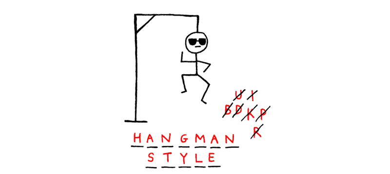 Both the teacher and the class would pick a topic. The teacher would then draw a stand and a short vertical line, representing the rope off which a hangman would be further drawn. He/she would proceed by choosing a word and writing it down on a surface. However, the word would mostly have missing letters. For example, _ _ _ O _ _ U _ S (it’s dinosaurs).