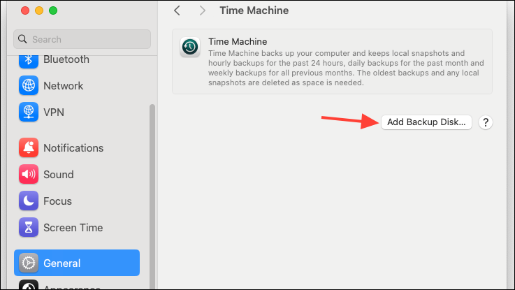 - Next, click on 'Add Backup Disk' and select the disk you connected.