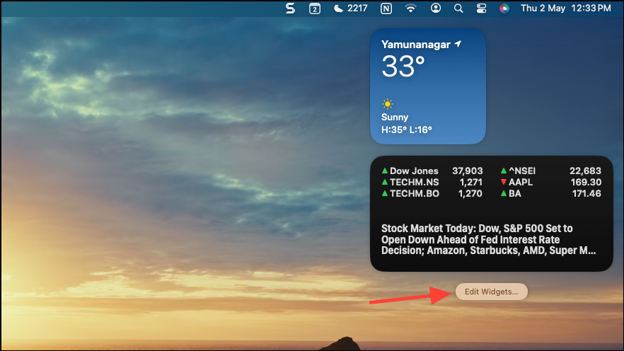 - To use widgets on Mac, click the date and time from the menu bar to open the Notification Center.