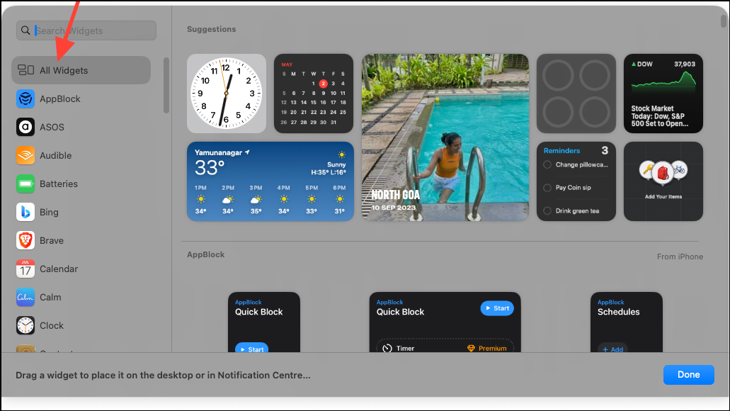 - You can now select the widgets you want to use from the widget gallery.