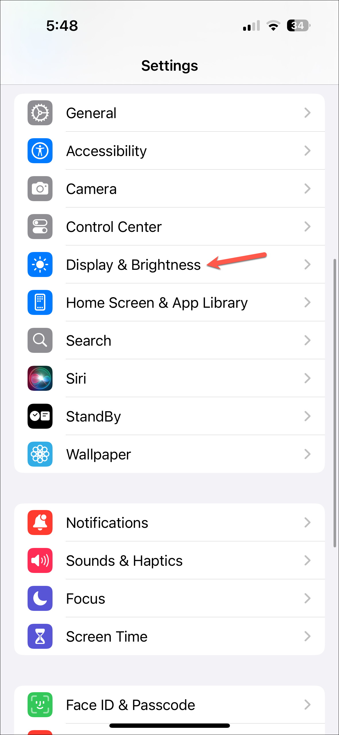 - Open the Settings app and navigate to 'Display & Brightness'.