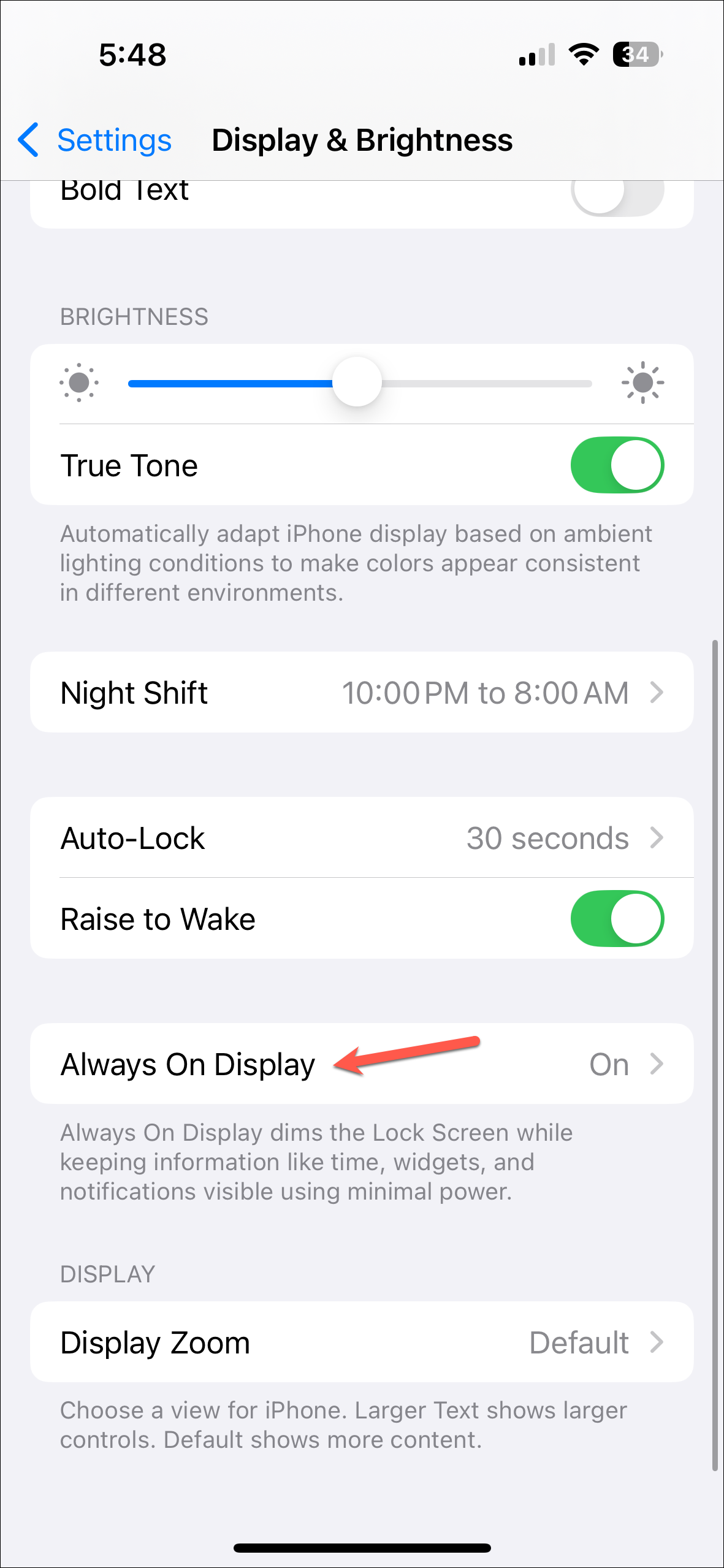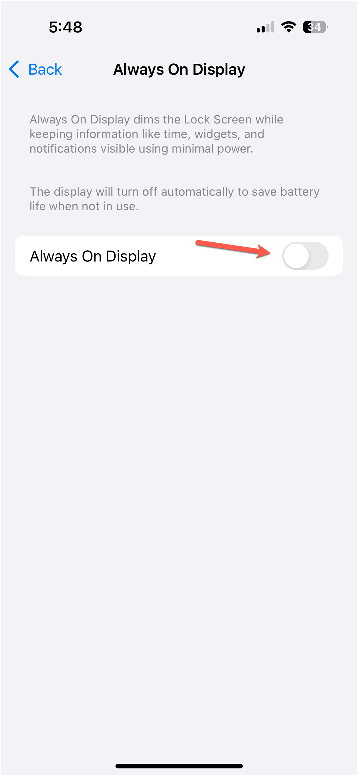 - Turn the toggle for Always On Display off.
