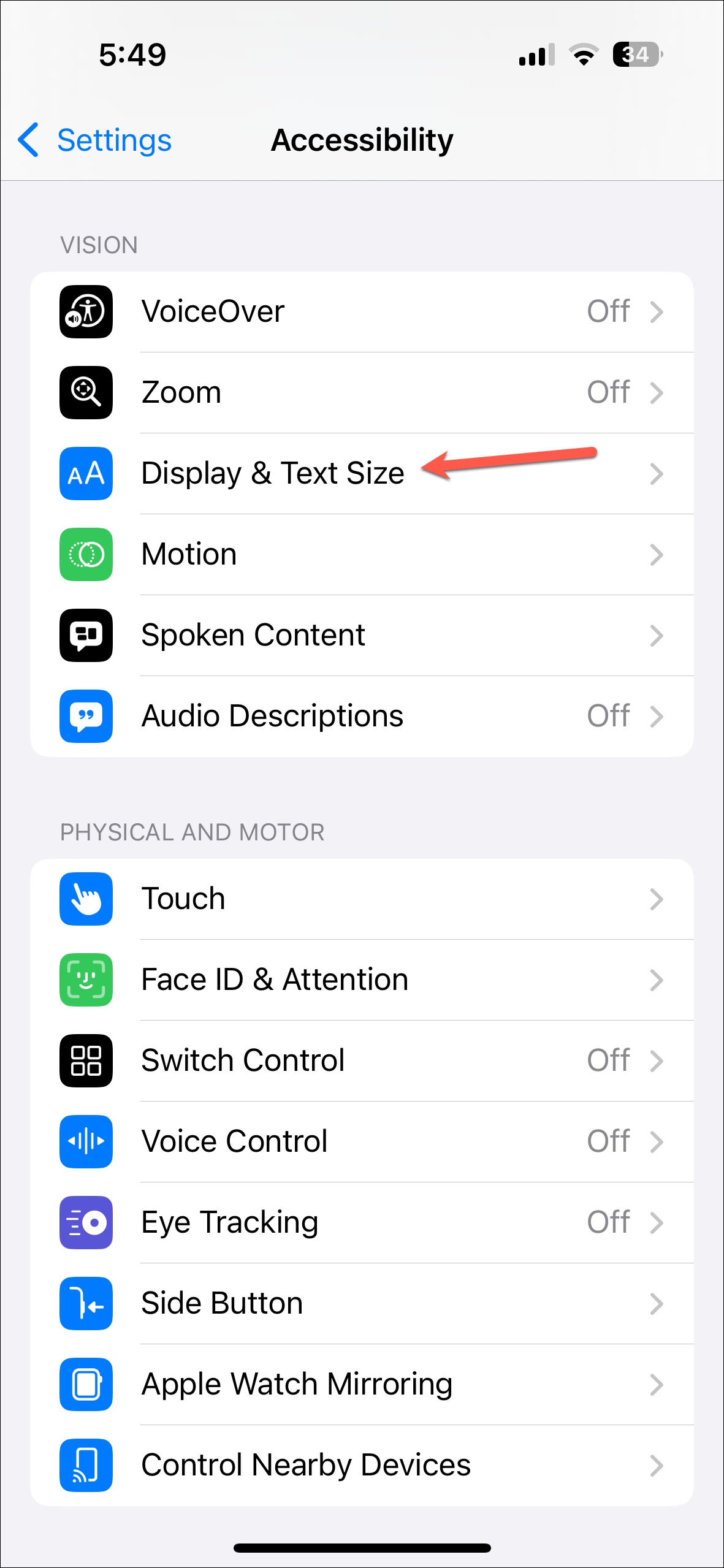 - Then, go to 'Display & Text Size'.