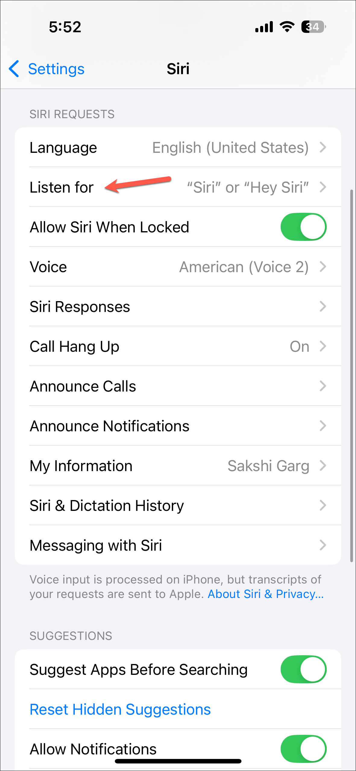 Disable listening for "Hey Siri"