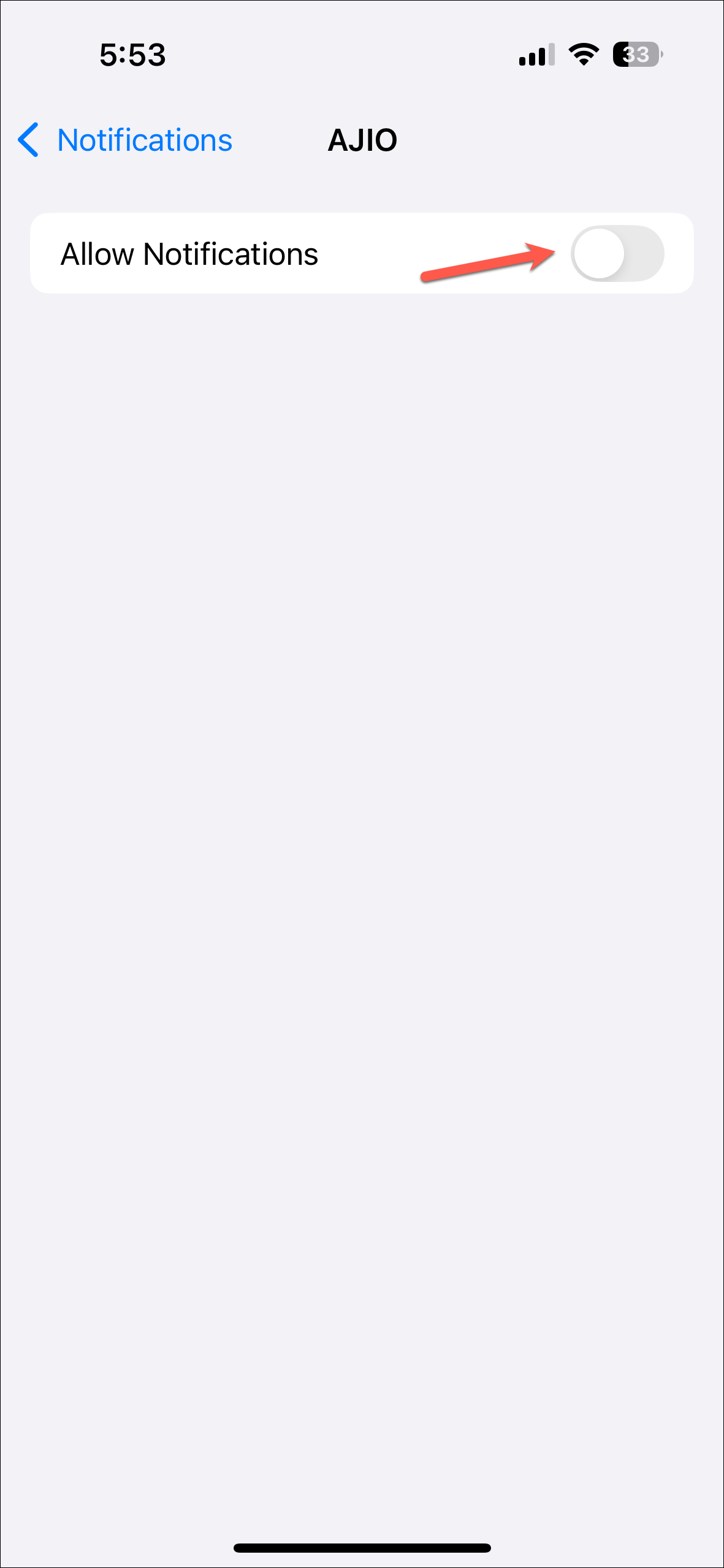 - For apps you don't want notifications from, turn off the toggle for 'Allow Notifications'.