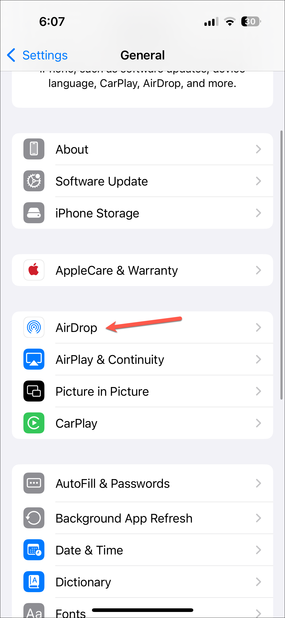 Settings>General. - Go to 'AirDrop' from the general settings.