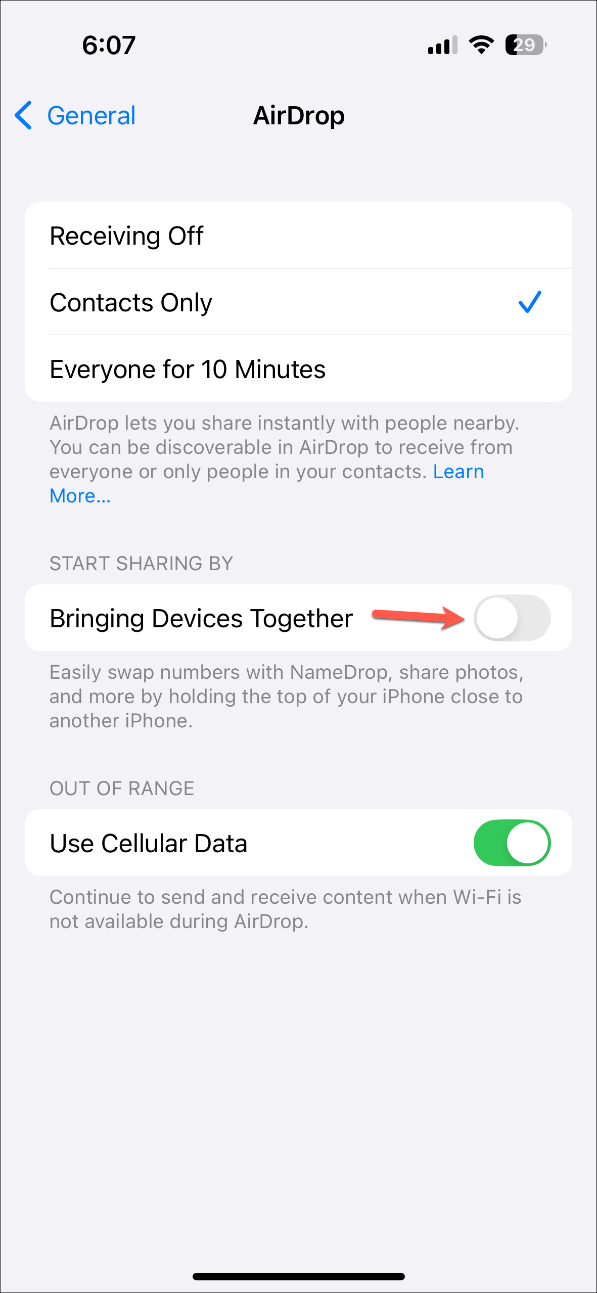 Turn off Nearby AirDrop Sharing