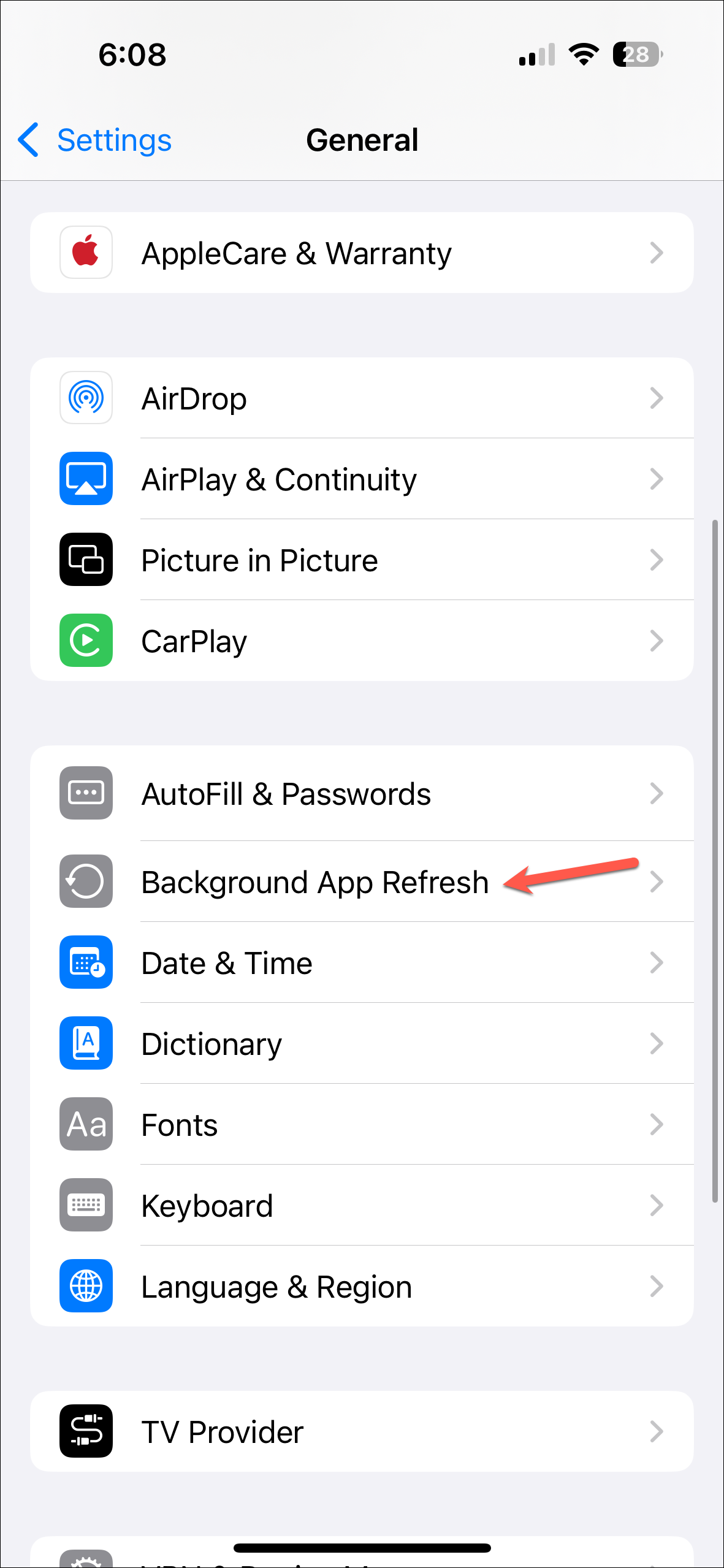 Settings>General. - Next, go to 'Background App Refresh'.