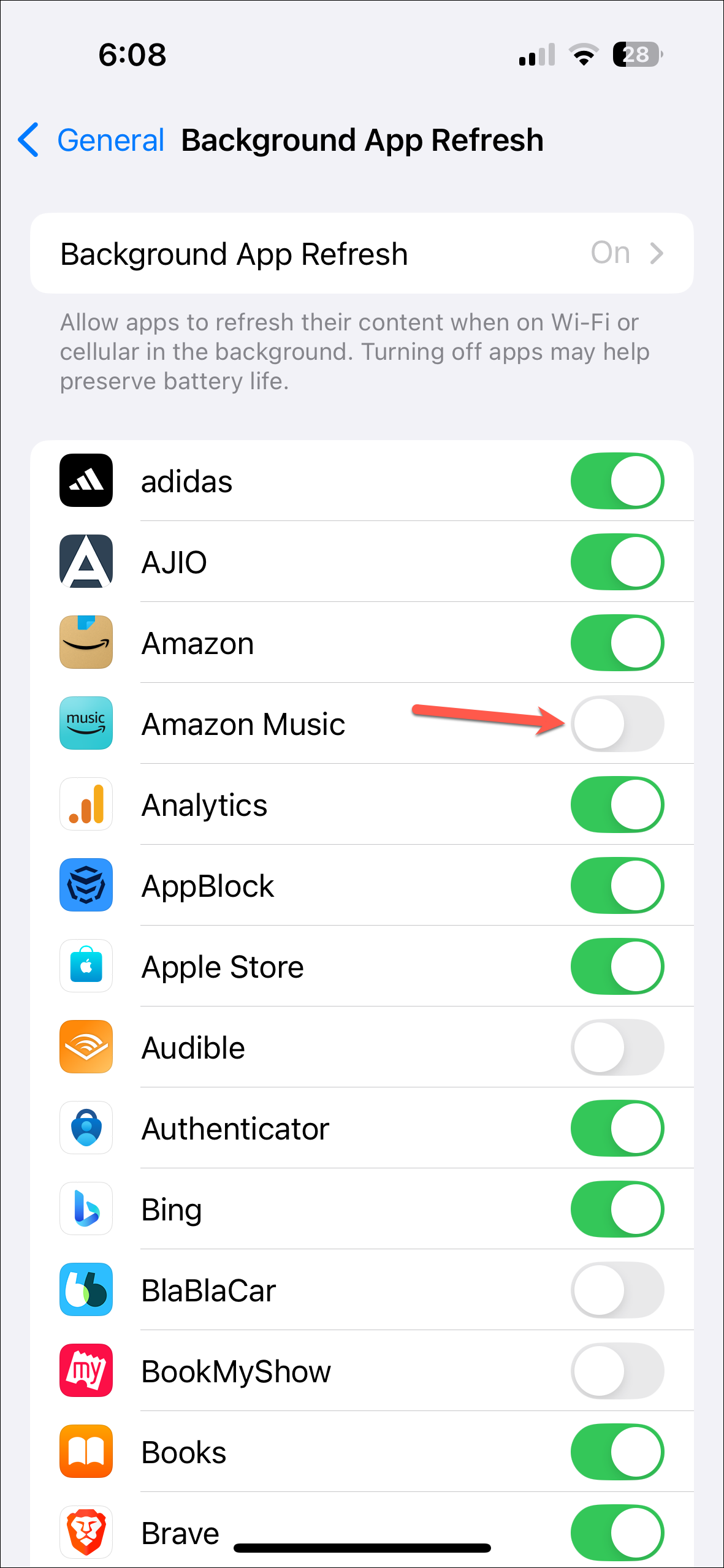 - Then, turn off background app refresh for apps that are eating too much battery or that you don't use frequently.