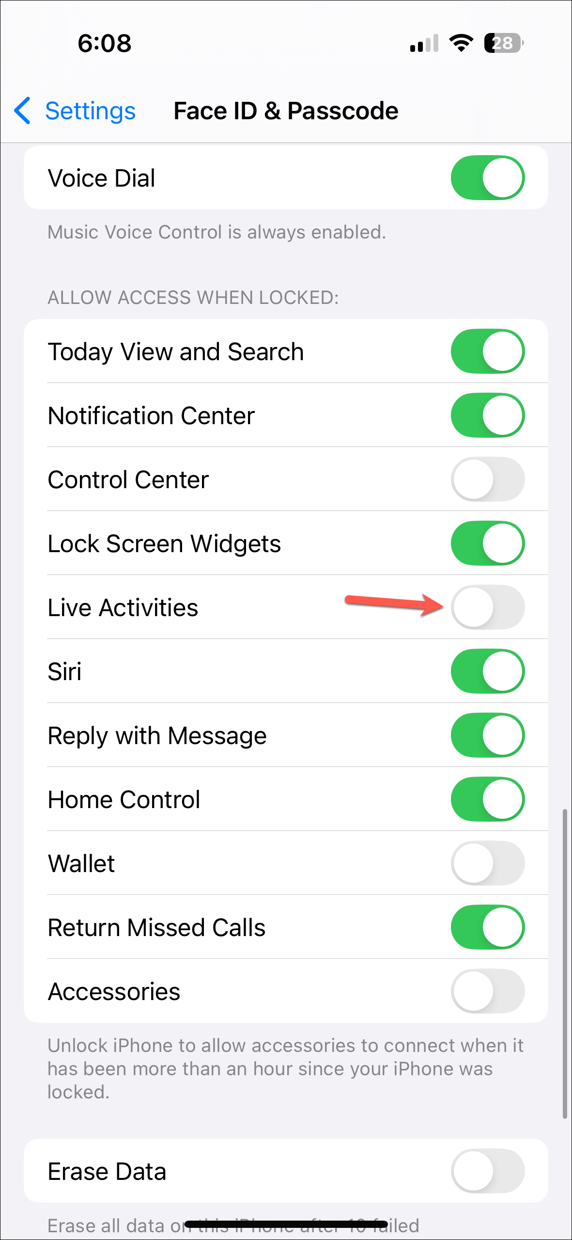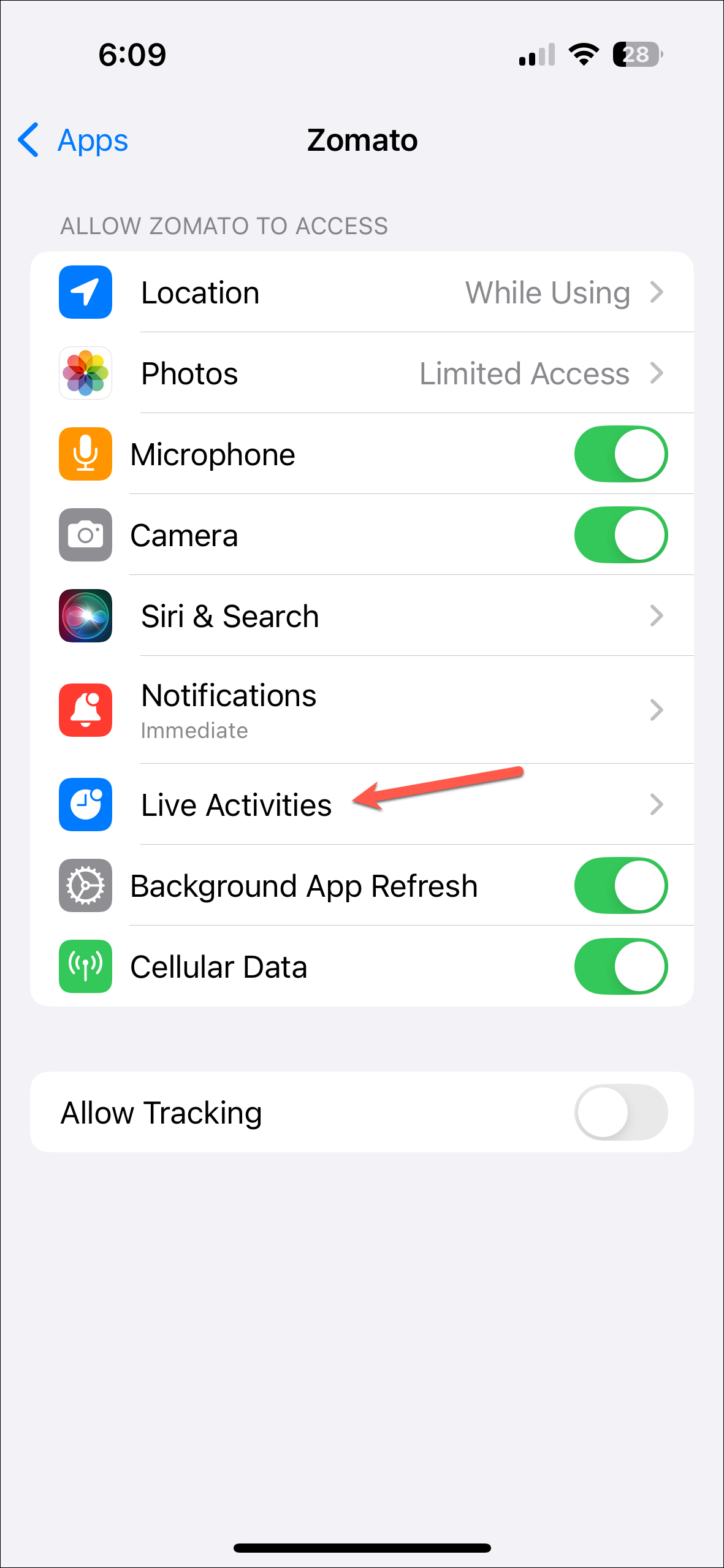 - Then, tap on 'Live Activities'.