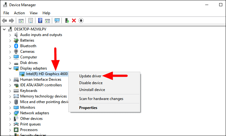 Now, right-click on the listed driver and select ‘Update driver’ from the context menu.