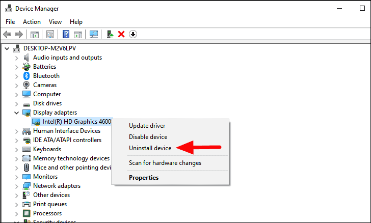 To reinstall the ‘Display’ driver, launch the ‘Device Manager’ app and locate the display driver as discussed in the last fix. Now, right-click on the driver and select ‘Uninstall device’ from the context menu.