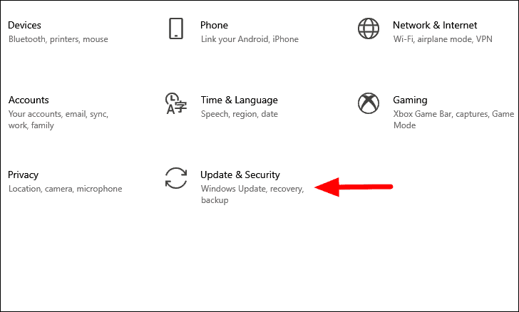 To update the Windows, press WINDOWS + I to launch system ‘Settings’, and then select ‘Update & Security’ from the list of options.
