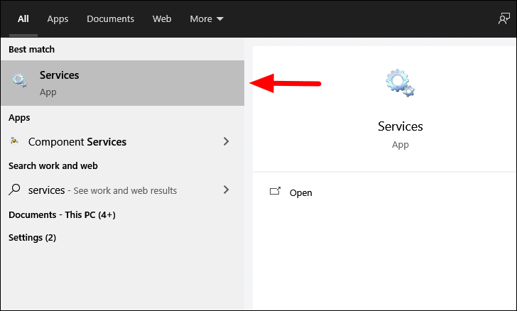 To disable ‘Windows Search’ service with the ‘Services’ app, search for the app in the ‘Start Menu’ and then launch it by clicking on the search results.