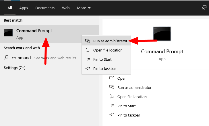 To run the SFC scan, search for the ‘Command Prompt’ app in the ‘Start Menu’, right-click on it, and then select ‘Run as administrator’.
