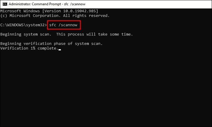 Now, wait for the scan to complete. It will take some time and repair any corrupt system file found along the way. Restart the computer after the scan is complete and check if the error is fixed.