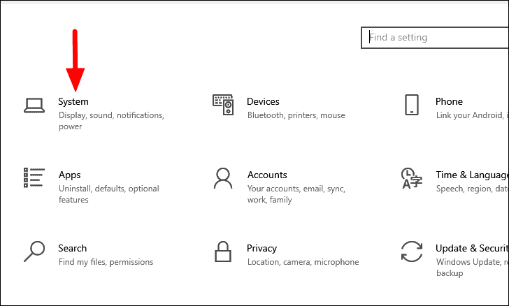 To modify the ‘Display’ settings, press WINDOWS + I to launch the system ‘Settings’ and then click on the ‘System’ option.