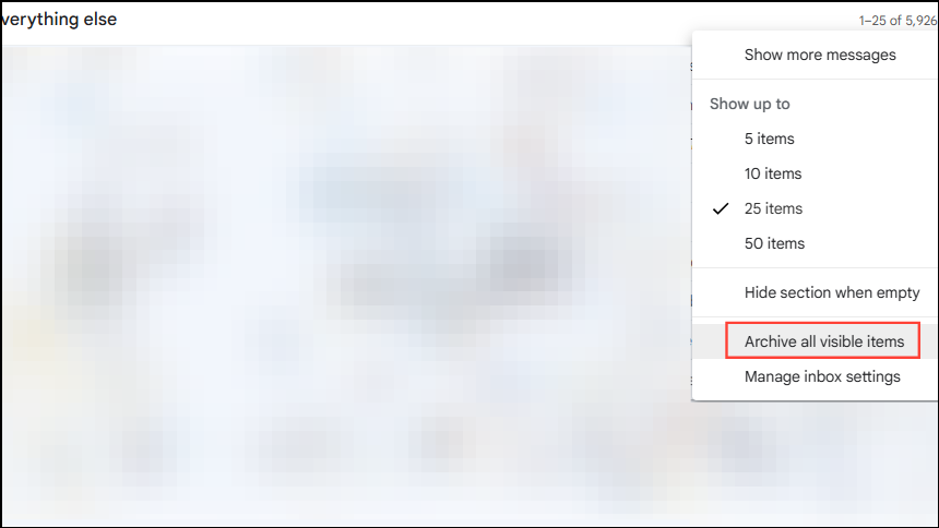 - Click on the 'Archive all visible items' to archive all email messages in your Gmail inbox.