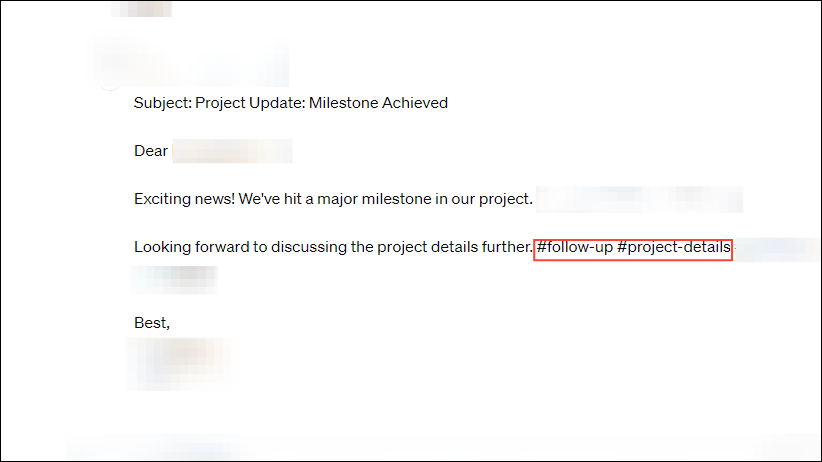 - For instance, you may be emailing a client regarding a project and can use #follow-up, #project-details, #name-of-the-project, etc. hashtags at the end of the message.