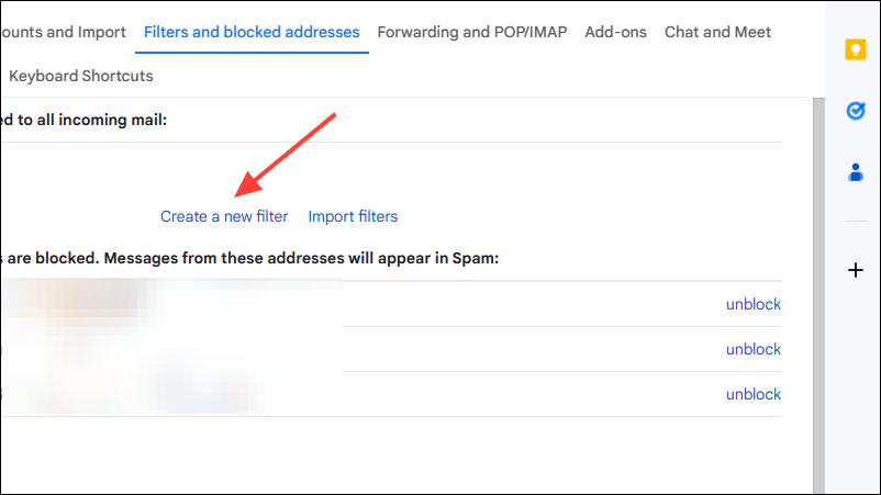 - To create a filter, go into Gmail settings and click on the 'Filters and Blocked Addresses' tab.