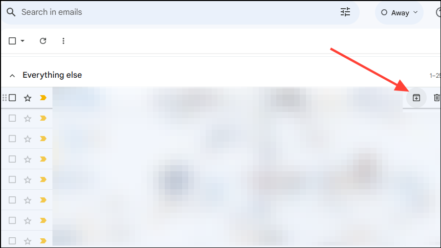 - To archive an email, simply hover over it and you will see the archive button on its right. Click on it to archive it.