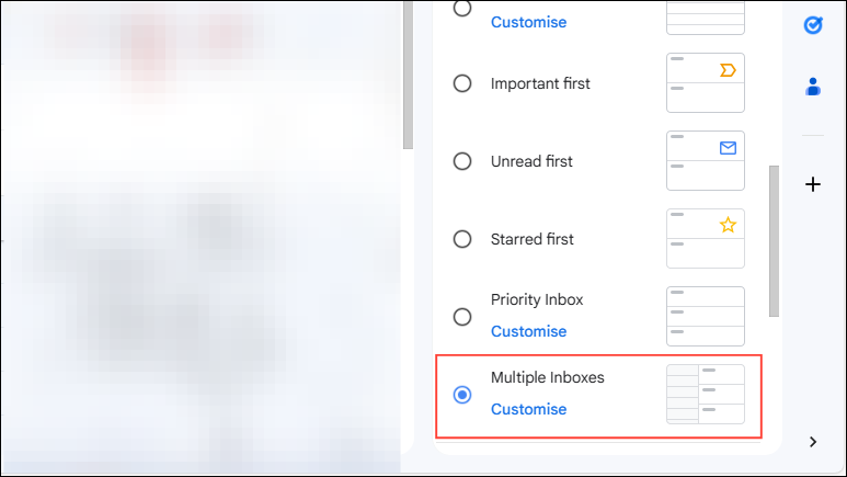 - Scroll down to the 'Inbox Type' section and click on the 'Multiple Inboxes' option. Enabling this will let you create multiple panes for different email categories, such as topic, type, sender, etc.