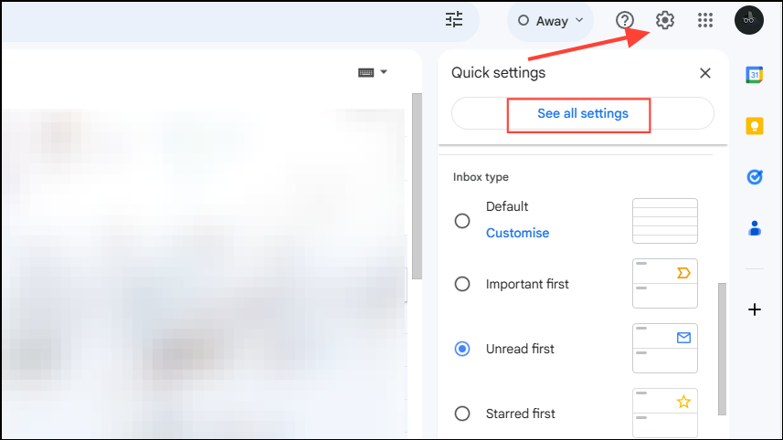 - Click on the gear icon on the top right corner of your Gmail inbox and then on the 'See All Settings' button.