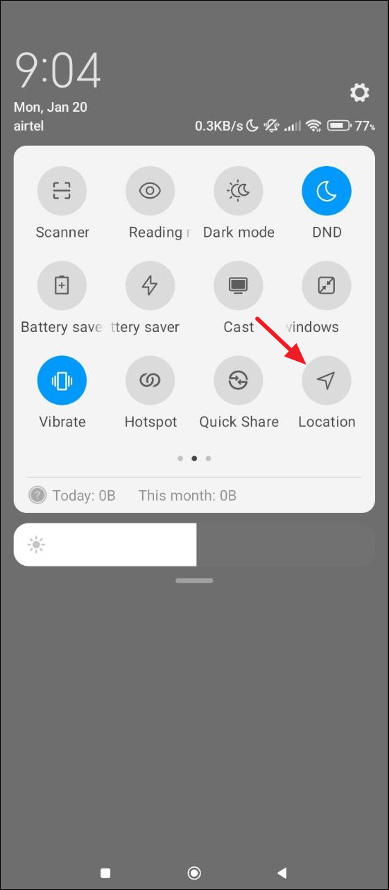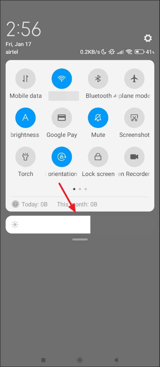 - Once it is disabled, you can manually adjust the screen brightness by pulling down the Quick Settings menu and dragging your finger left or right across the Brightness slider as required.