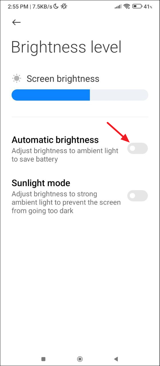 - Now tap on the Automatic Brightness toggle and turn it off.