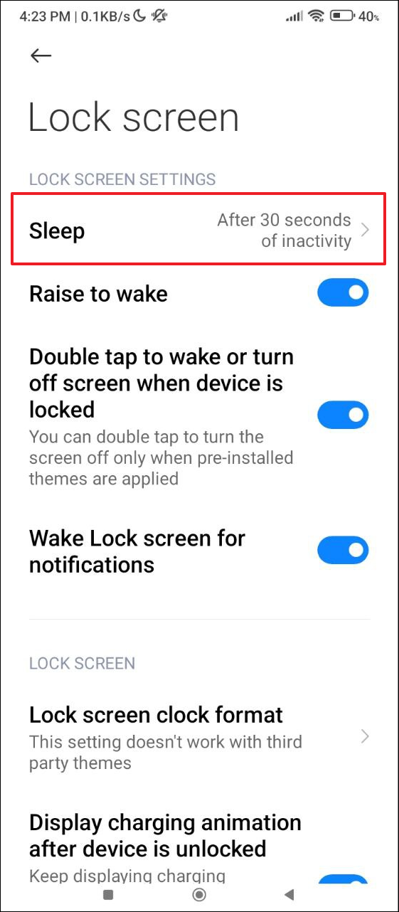 - Then tap on Screen Timeout, Sleep, or any similar setting.