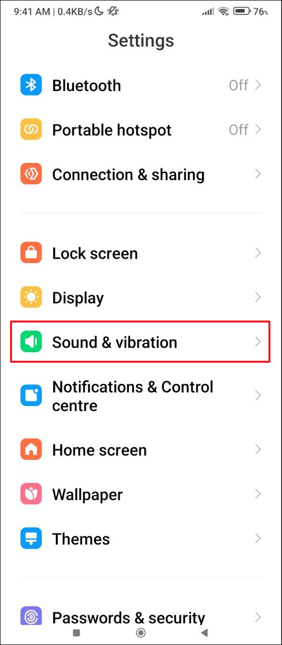 - Open the Settings app on 'Sounds' or 'Sound and Vibration'.