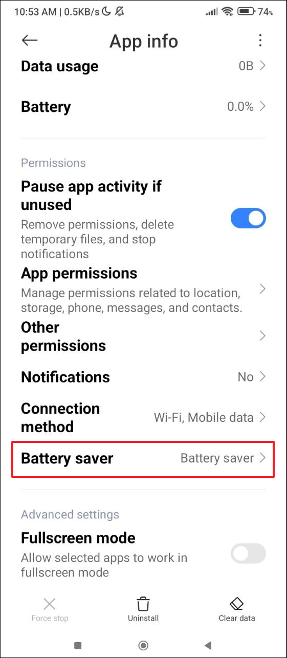 - Then tap on 'Battery' or 'Battery saver' to view related options for the app.