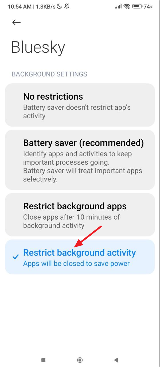 - Finally, tap on 'Restricted' or 'Restrict background activity'.