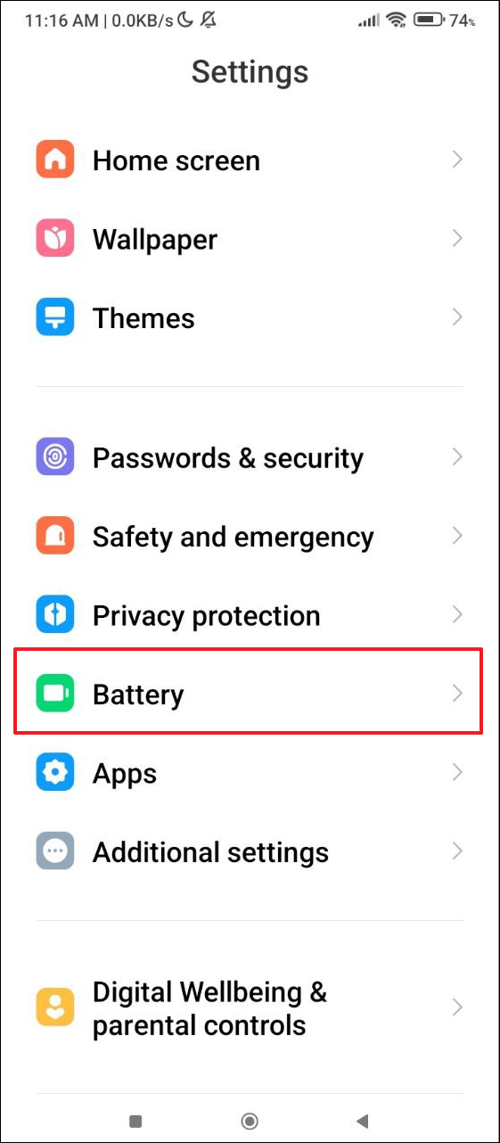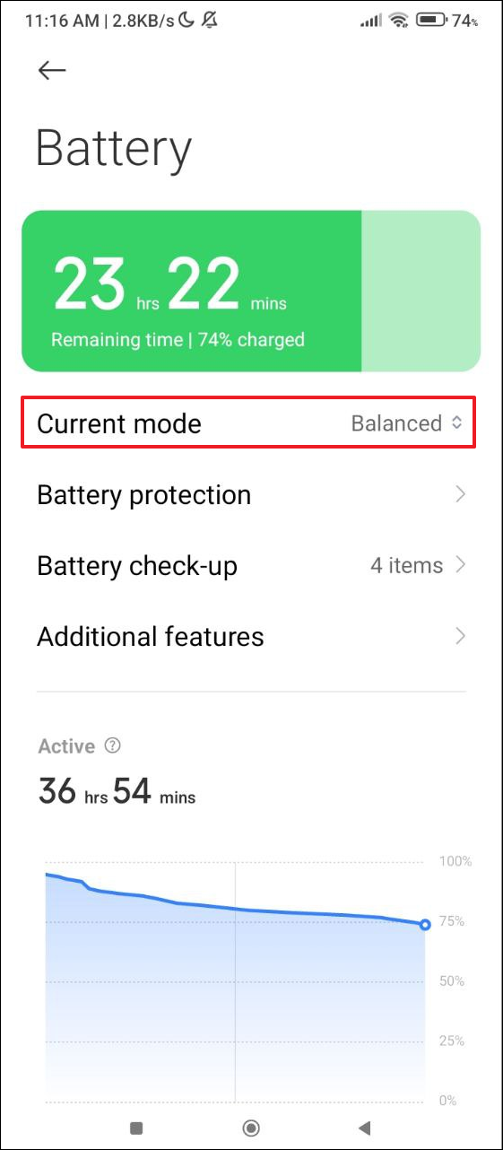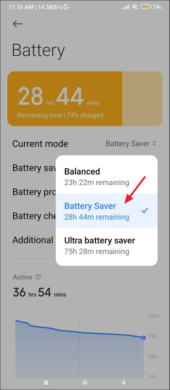 - On the Battery page, tap on 'Battery Saver' or 'Battery Mode'.