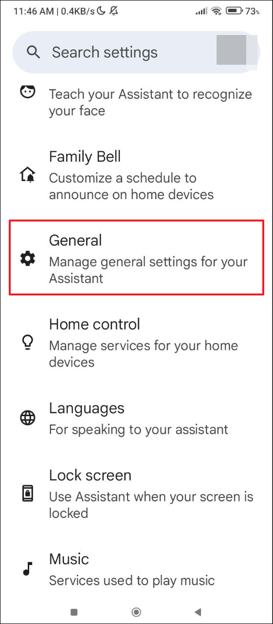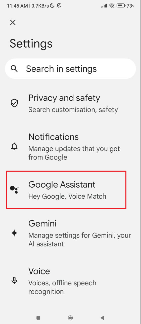 - On the Google account Settings page, tap on 'Google Assistant'.