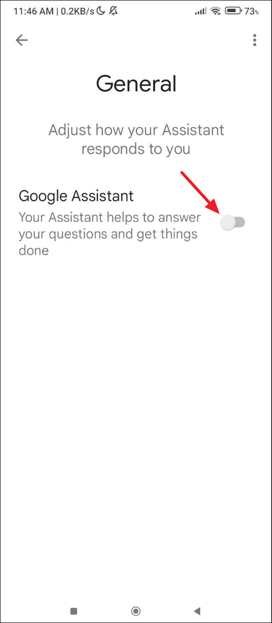 - Finally, tap on the Google Assistant toggle to disable Google Assistant. You can also turn off other digital assistants from their settings pages.