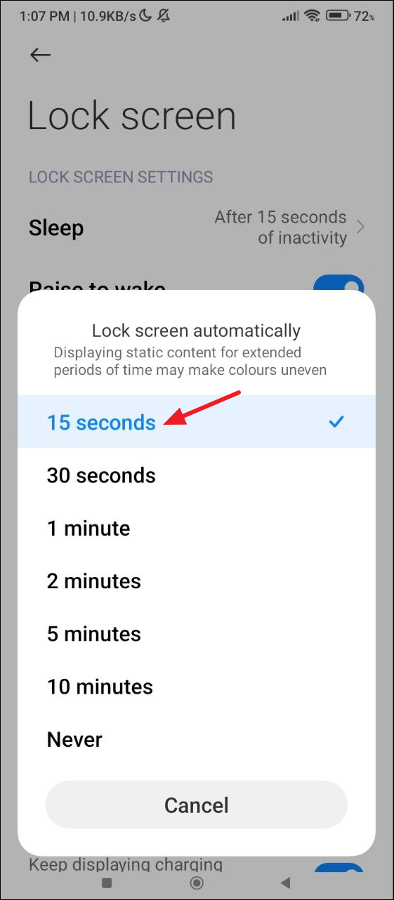- Change the option to a lower value, such as 15 seconds or 30 seconds. Now, your screen will turn off after a shorter period, helping save battery.
