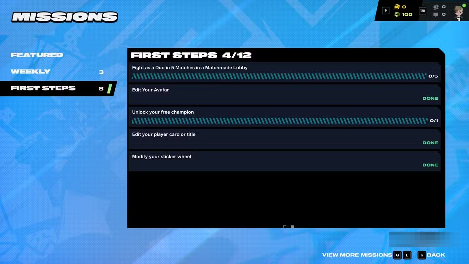 Complete “First Steps” missions | 1 | Intro missions designed for new players |