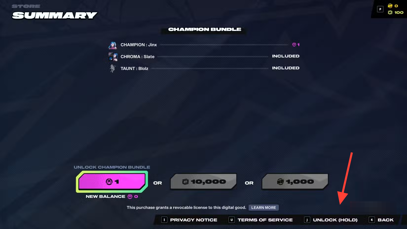 - Choose the Unlock option and confirm. The game will spend a Champion Token first; if none are available, you can pay with Credits or KO Points.