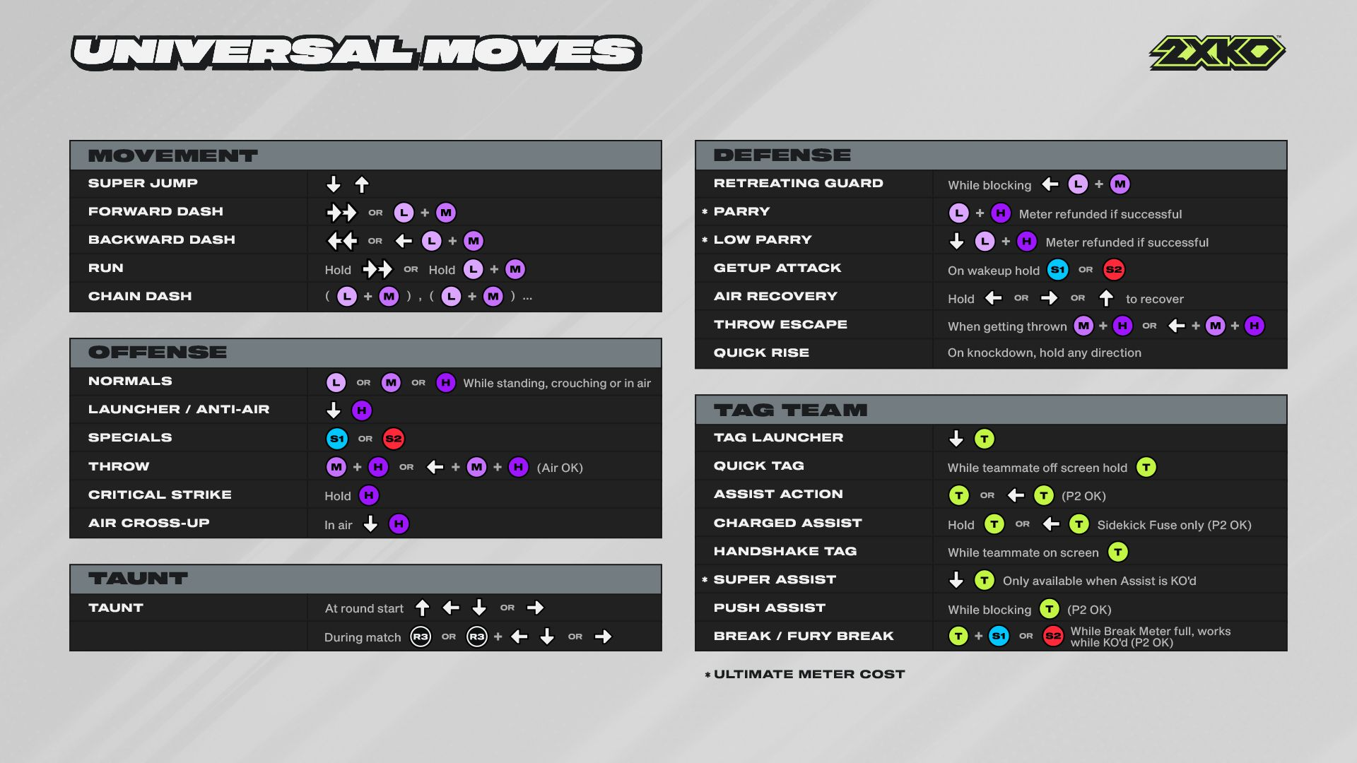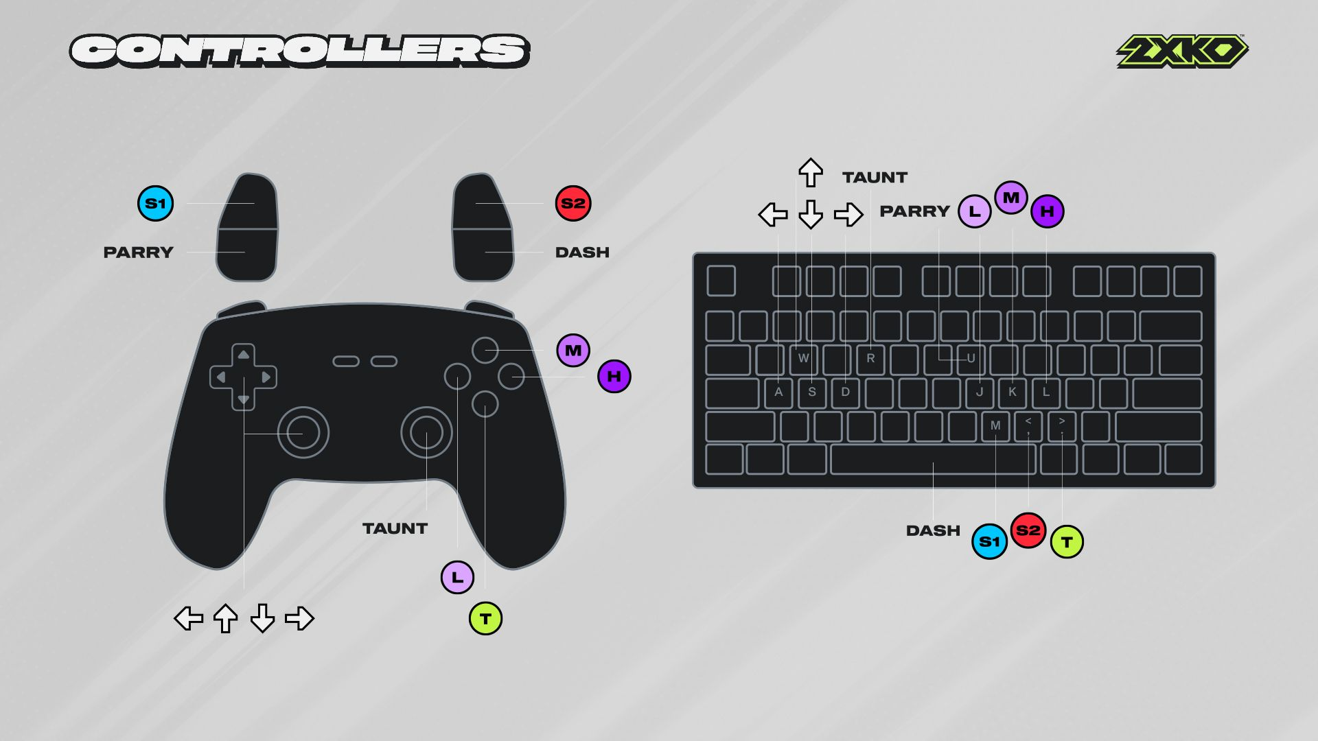 2XKO labels actions consistently across move lists, tutorials, and UI glyphs. Bind the actions below to a comfortable keyboard layout—these are the ones you’ll use every round.
