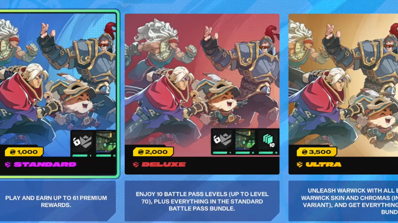 | Ultra (premium) | 3,500 KO Points | Everything in Deluxe + Warwick Champion with base chromas, Arcane Warwick skin with base chromas, Arcane Warwick Black & Gold chromas |
