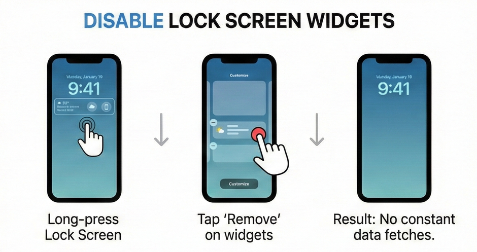 | Lock screen widgets | Show live info like weather, scores or reminders on the lock screen and home screen | Keep their apps active in the background, polling for new data and updating visuals | Fewer background refreshes, less network activity, longer standby time |