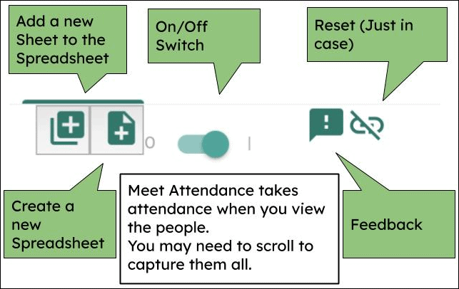 Its interface is as simple as the concept it captures. When you have the extension installed, it will automatically take the attendance any time you view the People in the meeting. The attendance will be captured in a Google Sheet automatically along with the date and time-stamp. You can also re-take the attendance as many times as you want during a Google Meet meeting. If you don’t want to take the attendance every time you view people, you can also turn it off within the meeting without having to refresh the page.