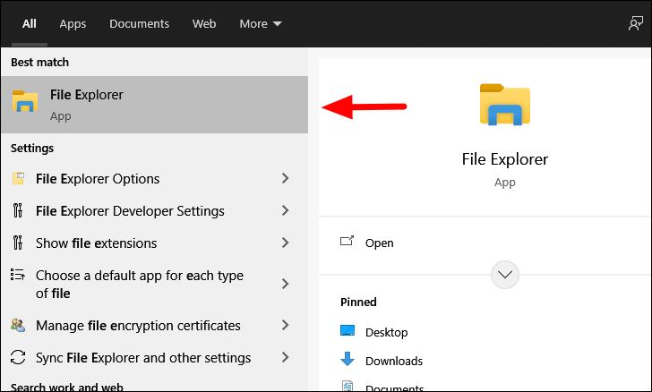 - Press Windows and type File Explorer in the search bar. Open the File Explorer app.