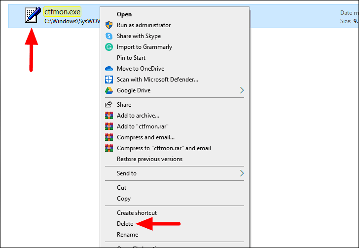 ctfmon.exefile and select Delete. Confirm any prompts that appear.