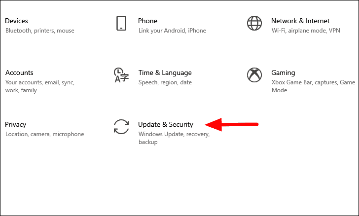 - Press Windows + I to open the Settings app. Click on Update & Security.