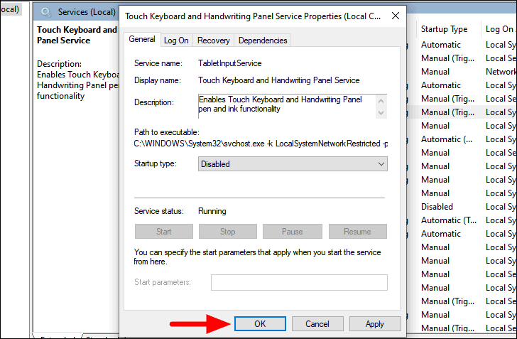 2. Disable the 'Touch Keyboard and Handwriting Panel' Service