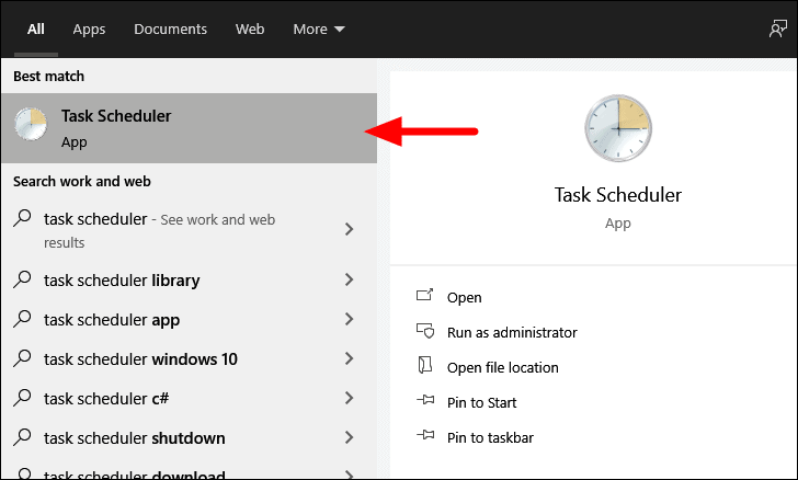 - Press Windows and type Task Scheduler in the search bar. Open the Task Scheduler app from the search results.