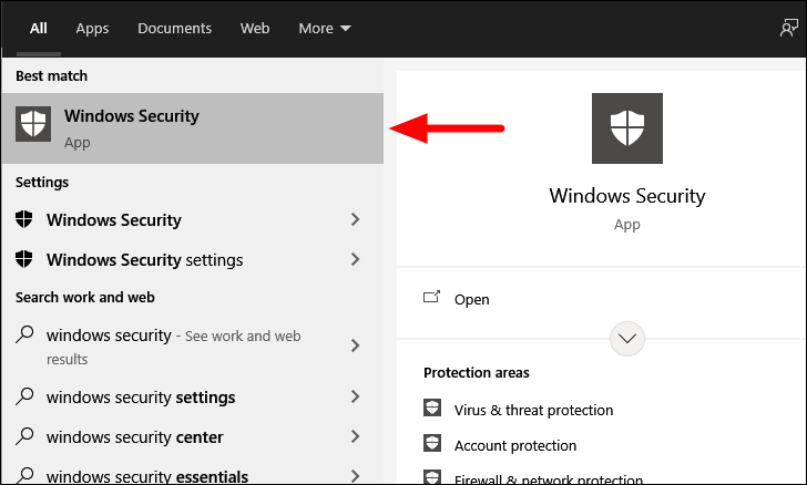 - Press Windows and type Windows Security in the search bar. Open the Windows Security app from the search results.