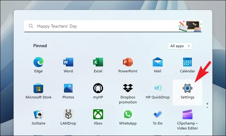 - Open the Start Menu and select 'Settings'.